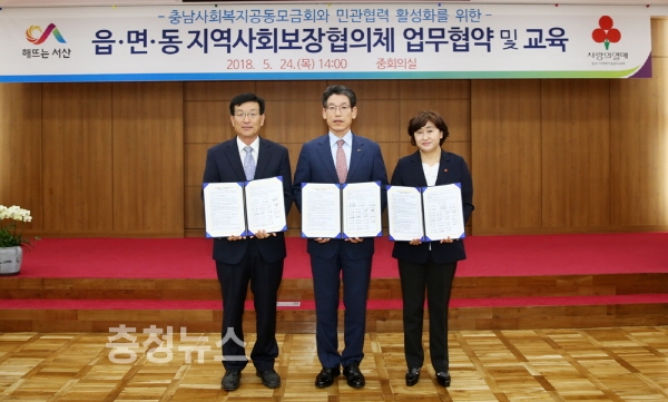 충남 서산시는 시청 중회의실에서 민관 협력 활성화를 위해 ‘읍면동 지역사회보장협의체 연합모금’ 업무협약을 지난 24일 체결했다.