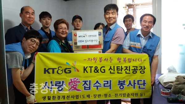 신성식 KT&G 신탄진 공장장은 “지난 2003년부터 16년째 저소득층 집수리 봉사 외 신탄진 거리환경개선, 독거노인목욕봉사, 자율방범활동 등 봉사활동을 해오고 있는데, 앞으로도 지역사회와 상생 협력하는 기업이 되고자 지속적이고 다양한 활동을 전개하겠다”고 전했다.