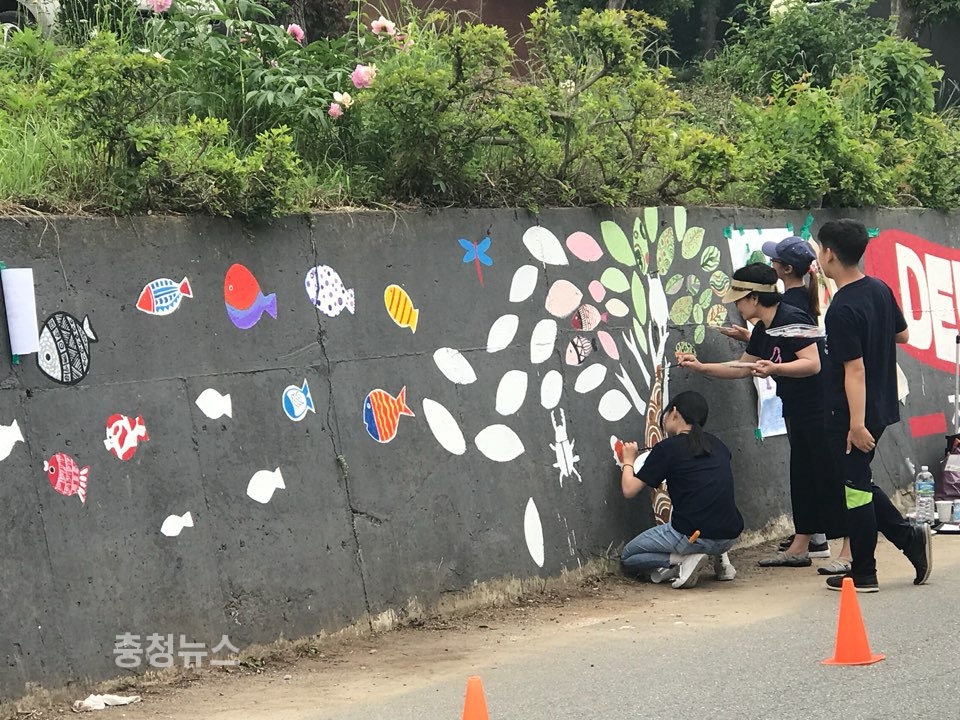 28일 교육청에 따르면, 미술과 디자인에 관심이 있는 학생들이 팀을 구성하여 정기적으로 자신의 꿈을 실현하기 위해 다양한 활동을 펼치고 있는 세디데코팀이 지난 27일 고복저수지 인근에서 벽화 그리기 봉사활동을 펼쳤다.