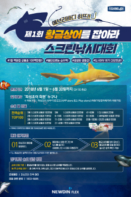 골프존뉴딘그룹 계열사 ㈜뉴딘플렉스(대표이사 송지헌)가 운영하는 스크린 낚시공간 ‘피싱조이(FishigJOY)’가 6월 한 달간 피싱조이 전 매장에서 ‘제1회 황금상어를 잡아라, 스크린낚시대회’를 진행한다.