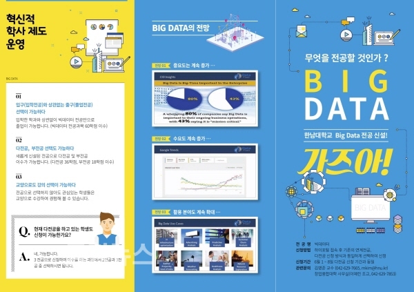 빅데이터 전공은 총 90학점(39과목)의 교과목을 편성했으며 머신러닝, 사회연결망분석, 데이터마이닝, Open Data 분석, R, SAS, Python 프로그래밍 등 프로그램 활용과 실습 중심의 교과목이 주를 이룬다.