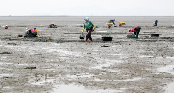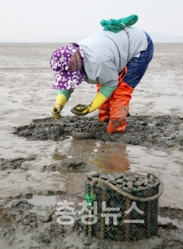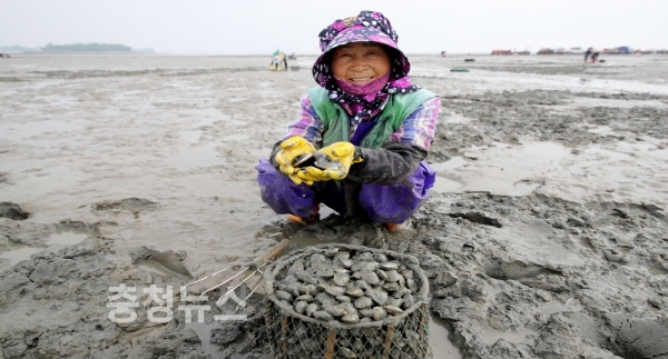 30일 군에 따르면, 안면읍 천수만 일대에 위치한 황도리에서는 매일 100여 명의 어촌계원들이 바지락 채취에 나서 하루 평균 총 4톤 가량을 채취하며 구슬땀을 흘리고 있다.