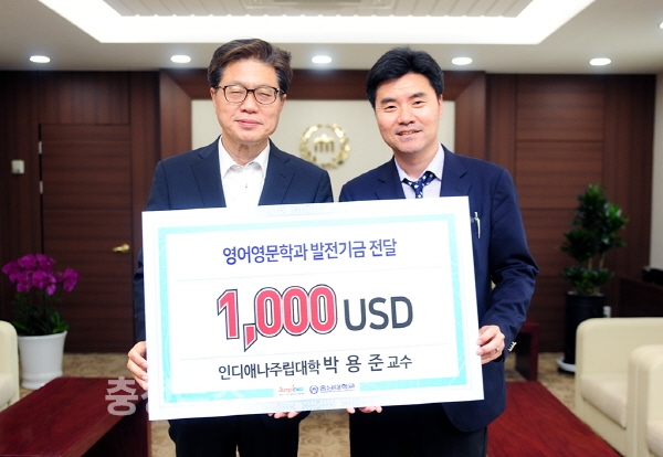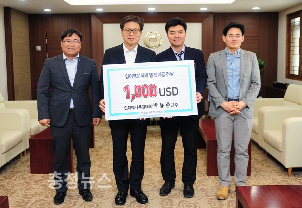 인디애나 주립대학교(Indiana State University) 교수로 재직 중인 박용준 동문(영어영문학과 93학번)은 30일 오덕성 총장을 방문해 영어영문학과 발전기금 1000달러를 기부했다.