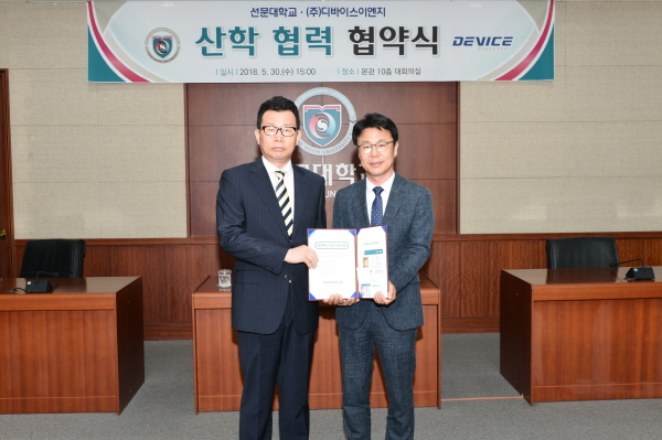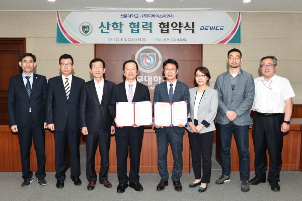 선문대학교(총장 황선조)는 ㈜디바이스이엔지와 30일 선문대 본관 10층 대회의실에서 황선조 총장, 최봉진 대표이사를 비롯한 관계자들이 참석한 가운데 지식정보 교류 활성화 및 상호발전을 위한 협약을 체결했다.