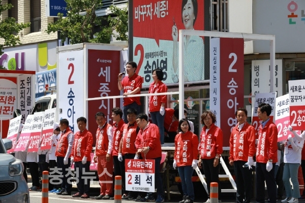 송아영 후보는 “홍준표 자유한국당 대표와 문재인 대통령은 충청인들에게 한 약속을 지켜야 한다. 그동안 정치인들은 행정수도 세종시와 관련된 약속은 식은죽 먹기로 저버렸다”고 아쉬워 했다.