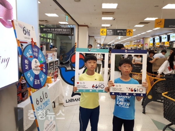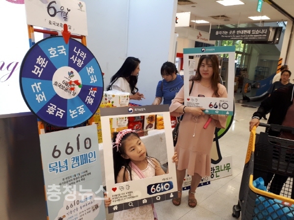 대전지방보훈청(청장 강윤진)은 6월 호국보훈의 달을 맞아 2일 ‘대전 둔산동 이마트’에서 6610묵념 캠페인 홍보 이벤트를 실시했다고 밝혔다.