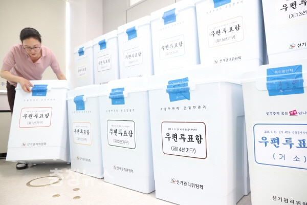 세종특별자치시선거관리위원회는 3일 제7회 전국동시지방선거와 관련하여 투표용지 검수 및 투표구별 배분작업을 실시하고 우편투표함을 비치했다.