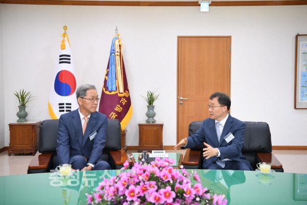 남세규 소장과 김도연 총장이 교류협력에 대한 의견을 나누고 있다.