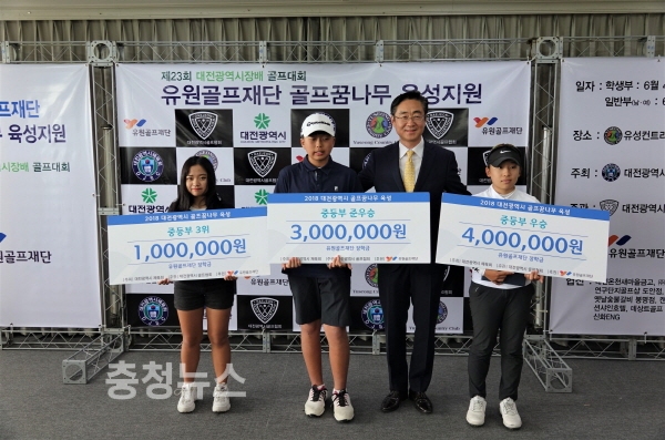 (재)유원골프재단(이사장 김영찬)이 5일 오후 대전시 유성컨트리클럽에서 대전 지역 골프꿈나무 발굴 및 육성을 위한 ‘지역 골프꿈나무대회 장학증서 전달식’을 진행했다고 밝혔다.
