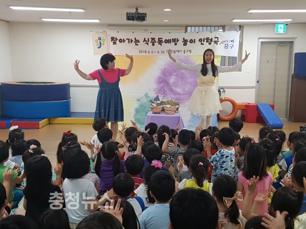 대전 중구는 어린이에게 바른식단을 쉽게 알리기 위해 찾아가는 놀이 인형극을 실시한다.