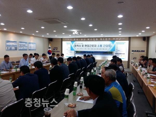 한국철도시설공단 충청본부(본부장 장봉희)는 지난 7일∼8일 양일간 관내 서해선 복선전철(홍성∼송산)·중부내륙철도(이천∼충주∼문경) 현장 등을 각각 방문해 협력사들과 함께 소통 간담회를 개최했다고 밝혔다.