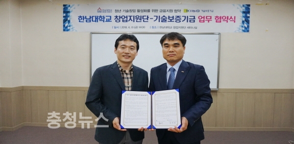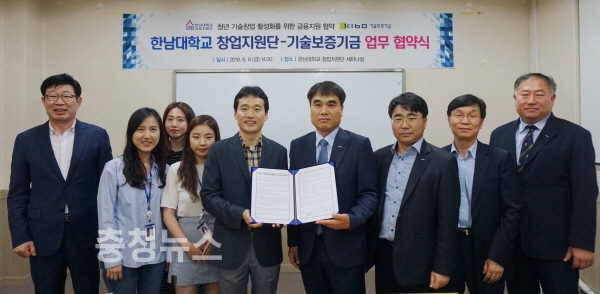 한남대 창업지원단과 기술보증기금 충청지역본부가 업무협약을 체결하고 있다