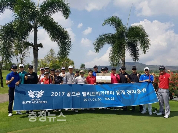 유원골프재단의 후원으로 ‘2017 동계 전지훈련’에 참여한 유소년장학생들이 기념 촬영을 하고 있다.