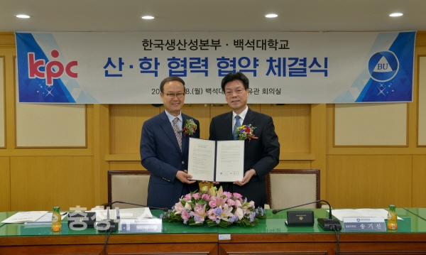 백석대학교(총장 장종현)는 18일 교내 자유관 2층 회의실에서 한국생산성본부와 산학협력협약을 체결했다.