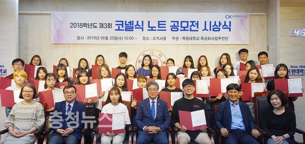 목원대학교 특성화사업단(단장 정재호)의 주관으로 ‘2018학년도 제3회 코넬식 노트 공모전 시상식’이 20일 교내 대학본부 도익서홀에서 열렸다.