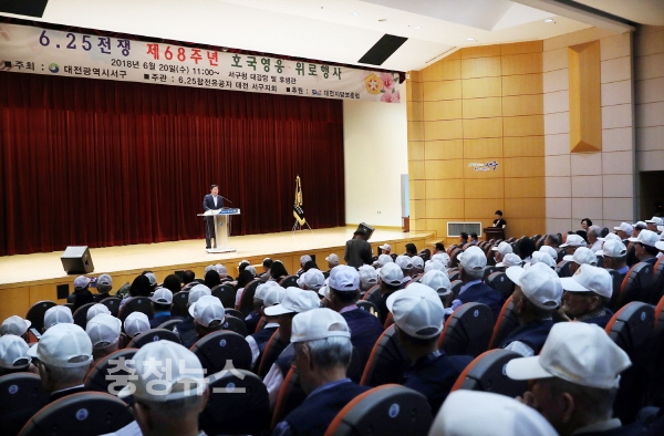 대전 서구(구청장 장종태)는 20일 구청 대강당에서 6.25 참전 유공자회 회원 등 250여 명이 참석한 가운데, ‘6.25 전쟁 68주년 기념행사’를 개최했다고 밝혔다.