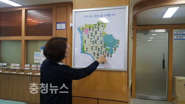 민원실 앞에 통별 위치와 통장 37명의 사진 소개 현황판 게시해