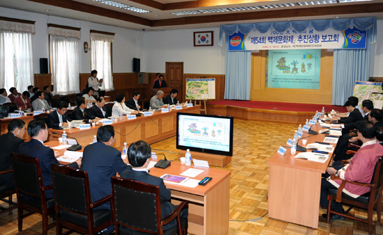 충남도는 16일 도청 대회의실에서 이완구 도지사 주재로 강태봉 도의회 의장, 이준원 공주시장, 김무환 부여군수, 도의원, 백제문화제 전문 PD, 道 및 재단관계자 등 50여명이 참석한 가운데 ‘제54회 백제문화제 성공개최를 위한 추진상황 보고회’를 개최했다.