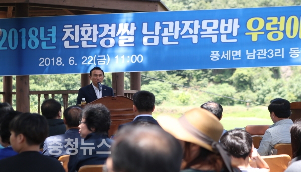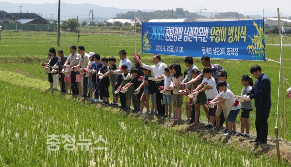 우렁이방사 행사가 열린 풍세면 남관3리 마을은 2002년부터 친환경 쌀을 생산해온 선도적 마을로 올해는 42개 농가가 친환경 농업에 참여하고 있다.