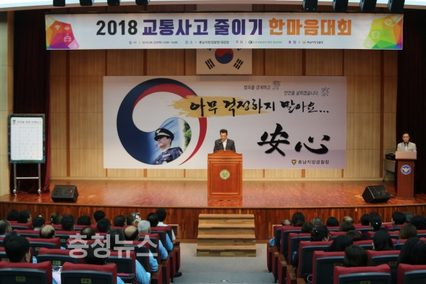 도로교통공단 대전⦁충남지부(지역본부장 주두환)는 2018년 교통사고 줄이기 한마음대회를 22일 충남지방경찰청 대강당에서 실시했다.