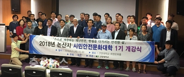 충남 논산시(시장 황명선)가 지난 21일 시민과 함께하는 안전도시 조성을 위한 ‘2018년 논산시 시민안전문화대학’을 개강하고 안전문화 마인드 확산을 위해 적극 나섰다.