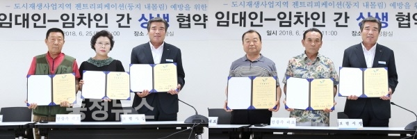 이번 협약은 2018년 도시재생뉴딜사업 신청 대상지의 시와 임대인, 임차인간 협약을 통해 도시재생사업 추진 과정에서 발생할 수 있는 젠트리피케이션 현상을 예방하기 위한 것으로, 협약을 통한 선제적 대응으로 임대인과 임차인 모두가 상생할 수 있는 대안을 제시하기 위해 마련한 것이다.