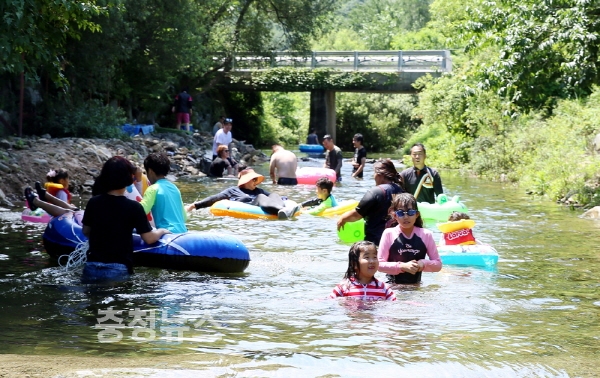 용현계곡에서 물놀이를 즐기고 있는 모습