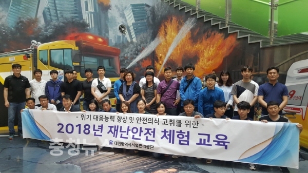 대전시설관리공단(이사장 김근종)은 26일 직원 31명을 대상으로 천안에 위치한 충청남도 안전체험관에서 재난안전 체험교육을 실시했다.