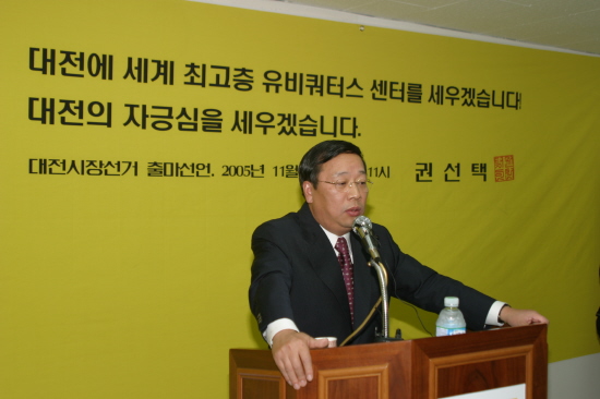 권선택 의원은 출마기자회견 전 미리 배포한 출사표를 통해 "민주평화개혁세력이 중심이 된 정권 재창출과 대전시의 새로운 변화와 발전을 위해서는 반드시 승리해야 한다"고 전제한 뒤 "그러기 위해서는 가장 열린우리당다운 후보가 나서야 한다"며 출마의 변을 밝혔다.