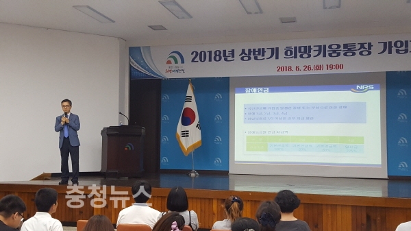 희망키움통장 가입자 자립역량강화 교육은 매년 상․하반기 2차례에 걸쳐 실시되며, 이번 교육은 국민연금공단 윤태준 노후준비 전문강사를 초빙해 ‘평생월급 프로젝트’라는 주제로 참여자들에게 다층보장체계의 중요성, 국민연금과 기초연금, 다양한 연금제도 등에 대한 유익한 정보를 제공해 호응을 얻었다.