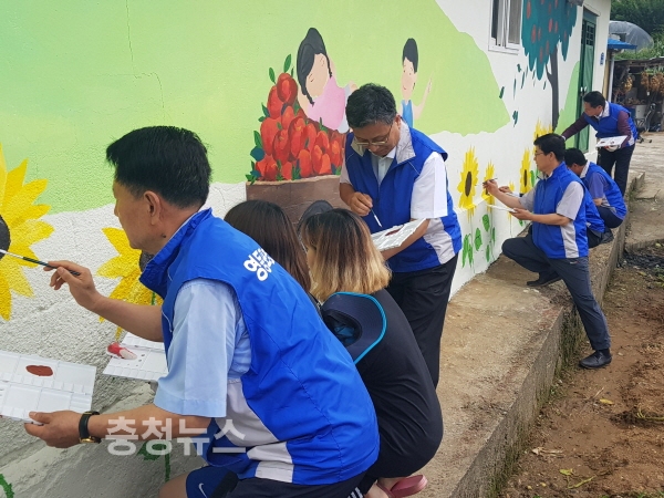 충남 예산군 신양면 서계양2리 마을에서 벽화그리기 모습