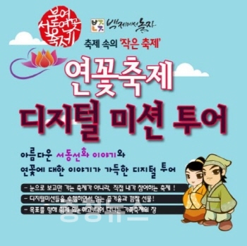 특히 ‘연꽃 디지털 미션 투어’는 참가자가 QR밴드를 팔목에 차고 연꽃축제 행사장 곳곳에 마련된 미션 장소에서 9가지의 미션들을 수행한다. 각 미션장소에서 부여 받은 누적점수가 높은 사람에게는 다양한 상품을 받을 수가 있어 가족단위의 관광객들에게 큰 관심을 모을 것으로 기대하고 있다.