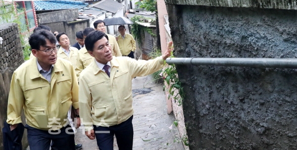 황인호 동구청장은 2일 제7호 태풍 ‘쁘라삐룬’이 장마전선과 함께 북상함에 따른 인명 및 재산 피해 방지를 위해 재해 위험지구에 대한 현장점검을 실시했다.