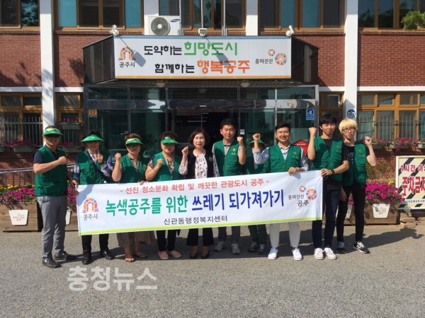 한편, 신관동과 신관동새마을회는 환경정화 활동 후, 공주시생명과학고 네거리에서 ‘쓰레기 되가져가기’, ‘여름철 물놀이 안전’, ‘공주주소 갖기’ 등 캠페인을 통해 시민들에게 주요 시책들을 홍보하기도 했다.