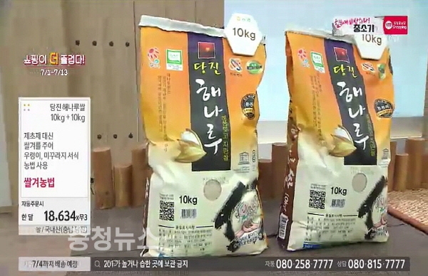 최근 대형마트를 중심으로 판매량이 꾸준히 늘고 있는 당진 해나루쌀이 지난 2일 TV홈쇼핑인 아임쇼핑방송을 통해 전국 소비자를 사로잡았다.