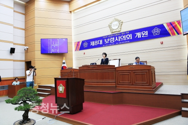 보령시의회(의장 박금순)는 3일 의회 본회의장에서 제8대 보령시의회 개원식을 가졌다.