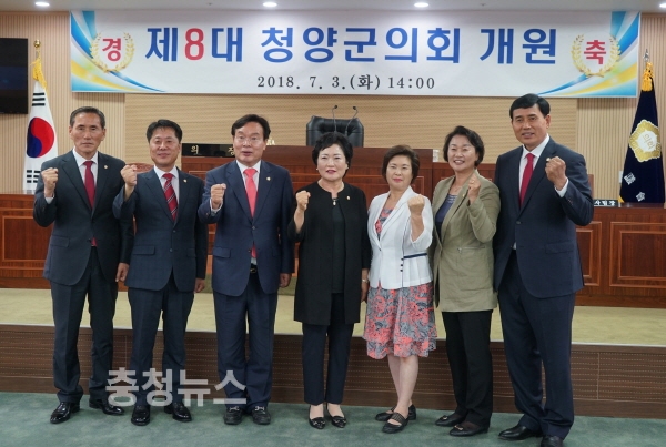 제8대 청양군의회(의장 구기수)가 지난 3일 본회의장에서 개원식을 갖고 본격적인 의정 활동에 돌입했다.