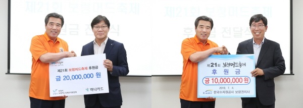 이번에 전달된 후원금은 하나카드 2000만원, KEB하나은행과 K-water 보령권관리단 각 1000만원으로, 축제 프로그램 운영의 다변화에 큰 힘을 실어 주게 됐다.
