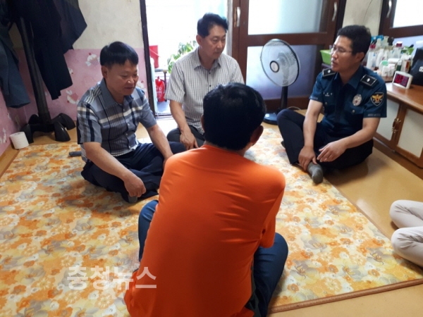 5일 아산시에 따르면 박승우 아산시 사회복지과장과 김창선 아산경찰서 보안계장이 온양6동에서 거주하고 있는 북한이탈주민 가정을 함께 방문해 백미와 식료품 등을 전달하고 복지상담을 가졌다고 밝혔다.