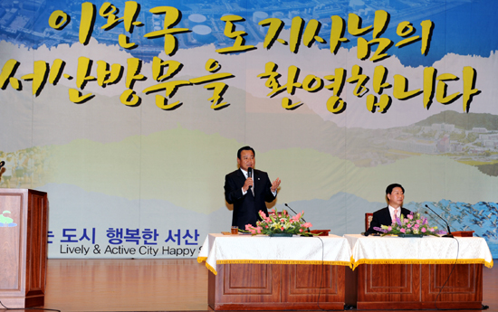 이지사는 "서산 대산공단의 경우 한해 22조원의 매출과 함께 정부에서 3조원에 이르는 막대한 세금을 거둬들이고 있지만 실질적으로 국가에서 대산지역에 베풀고 있는 것은 하나도 없다"며 행정안전부의 소도읍육성사업 대상지 선정에서 탈락한 서산 대산읍에 "정부와 충남도로부터 지원받을 수 있는 55억원에 버금가는 45억원을 3년간 지원하겠다"고 밝혔다.