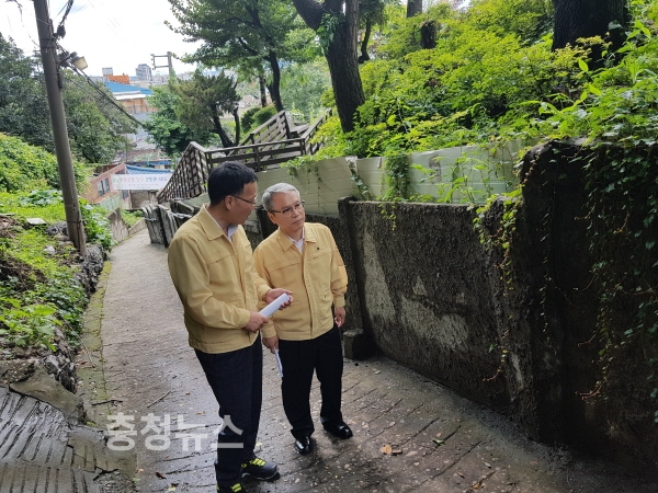 임근창 대전 동구 부구청장은 취임식을 대신해 6일 초지공원 등 재해취약지역 현장점검을 실시, 구민안전 살피기로 공식 업무를 시작했다.