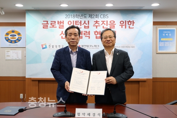 이 협약은 ‘2018년 중국 심천 하이테크페어’를 앞두고 대전TP가 대전 소재 전략산업분야(IT, BT, NT, MT) 중소기업의 참여를 지원하는 가운데, 한밭대 학생들이 이들 기업에서 중국 현지 인턴십을 수행하기 위해 추진됐다.