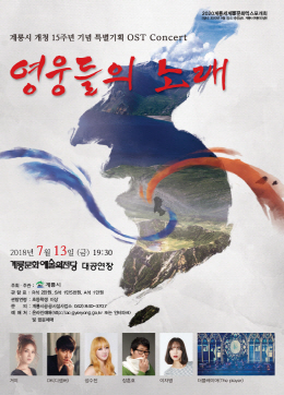 계룡시(시장 최홍묵)가 오는 13일 오후 7시 30분 계룡문화예술의 전당 대공연장에서 OST 콘서트 ‘영웅들의 노래’를 선보인다.