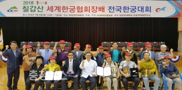 대한한궁협회 주관으로 2018년 칠갑산세계한궁협회장배 전국한궁개최가 7월6일 ~7일 청양군민체육관에서 세계대회가 됐다.