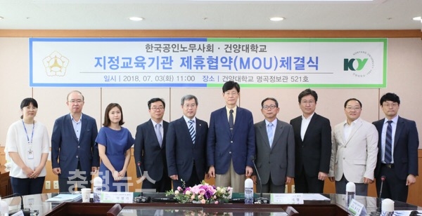 양 기관은 지난 3일 건양대학교 논산 창의융합캠퍼스에서 한국공인노무사회 박영기 회장과 건양대 조세형 부총장이 참석한 가운데 HRM·사회보험전문가 지정교육기관 선정 협약을 체결하고 오는 8월 HRM 사회보험 인증교육을 건양대에서 진행하기로 했다.