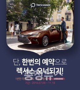 ㈜골프존카운티(대표이사 서상현)에서 운영하는 골프 부킹 서비스 ‘티스캐너’가 지난 9일부터 오는 11월 18일까지 티스캐너 회원을 대상으로 렉서스 ES300h를 증정하는 ‘단 한번의 예약으로 렉서스 오너되기’ 이벤트를 실시한다고 밝혔다.