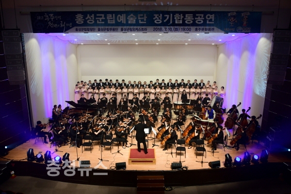 충남 홍성군은 군민들의 문화예술 향유 및 삶의 질 향상을 위해 지난 10일 홍주문화회관에서 군민 600여 명이 참석한 가운데 2018 홍성군립예술단 정기합동공연을 개최했다.