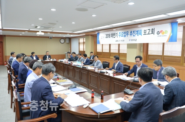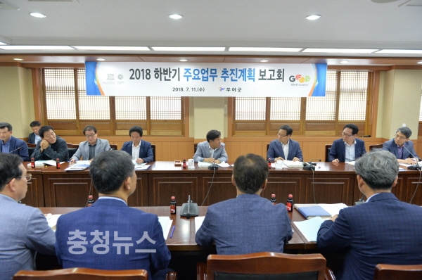 충남 부여군은 11일 군청 브리핑실에서 박정현 군수를 비롯한 전 부서장이 참석한 가운데 ‘2018 하반기 주요업무 추진계획 보고회’를 개최했다.