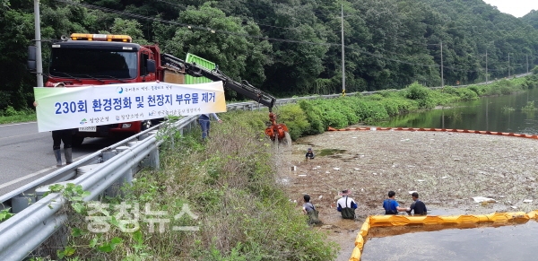 금번 환경정화행사는 7월초에 내린 청양군 정산면 지역의 200mm가 넘는 집중호우로 인해 천장저수지 상류부에서 떠 내려온 각종 부유물 쓰레기를 고무보트 2대, 집게차 1대, 포크레인 1대, 덤프트럭 2대, 쓰레기수거차량 오일헨스 등을 활용해 수중쓰레기 30톤을 수거했다. 따라서 아름다운 칠갑산과 천장저수지 출렁다리를 찾는 많은 관광객에게 공사와 청양군에 깨끗한 이미지를 줄 것으로 기대하고 있다.