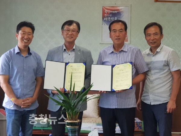 홍성군지속가능발전협의회와 홍남초가 환경교육 업무협약식 체결 모습